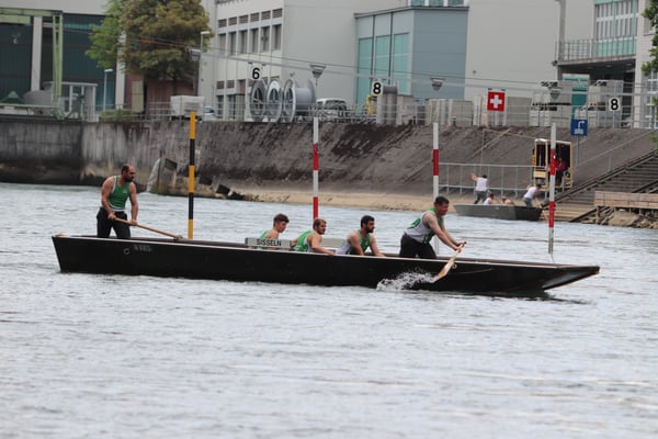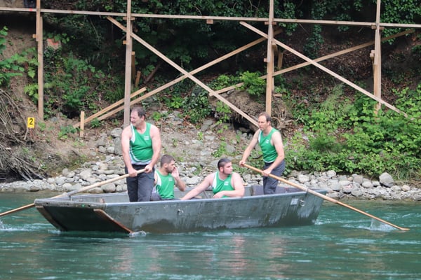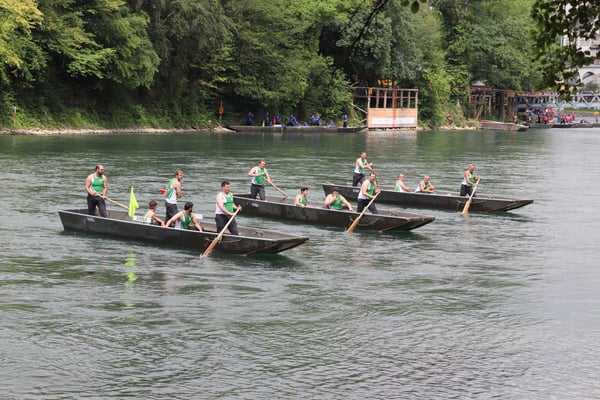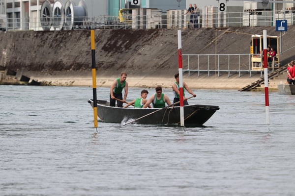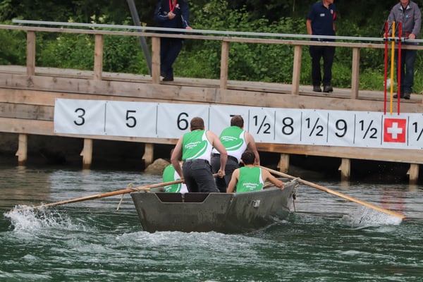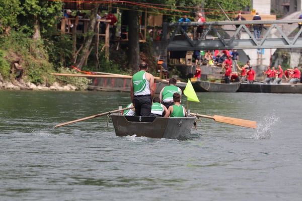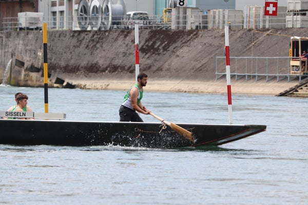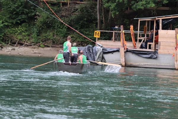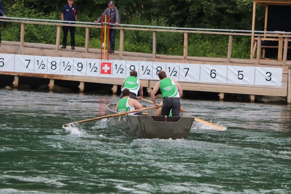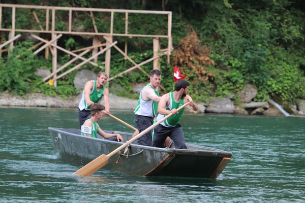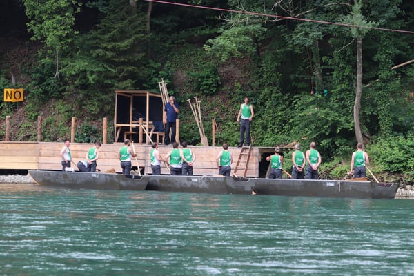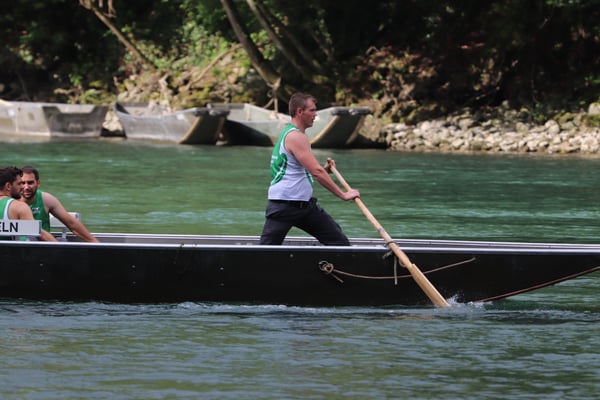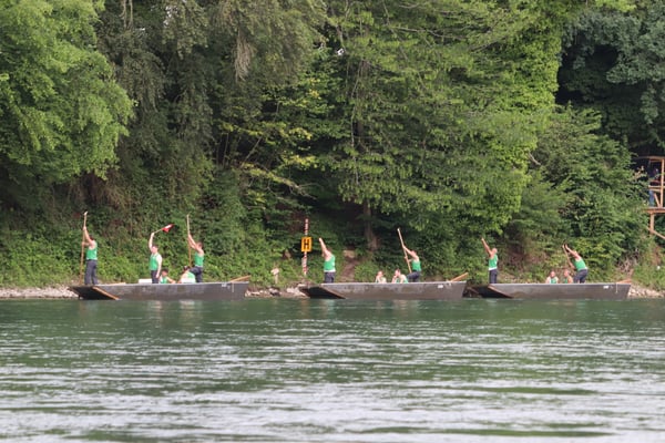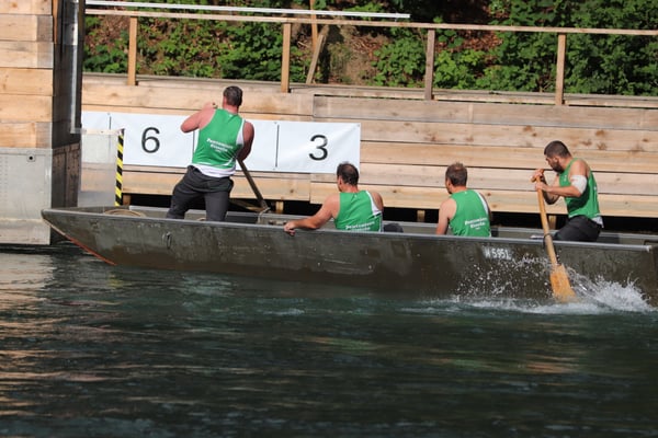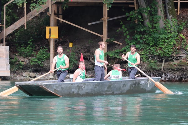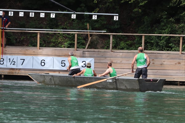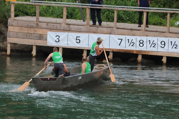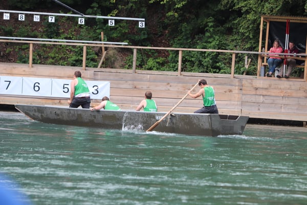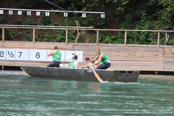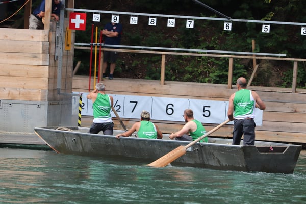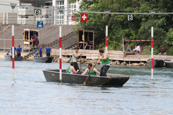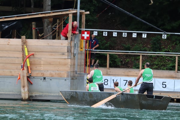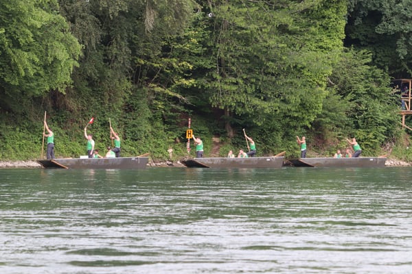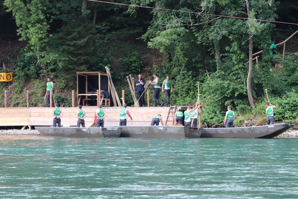 Saubere Überfahrt der Gruppe 2, Ablösung 1. Im Hintergrund zu sehen sind sowohl das zeitgleich stattfindende Einzelwettfahren, als auch Teile des Fällbaum.