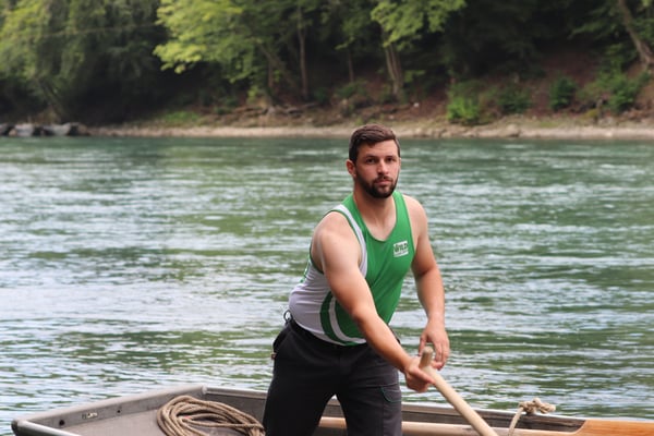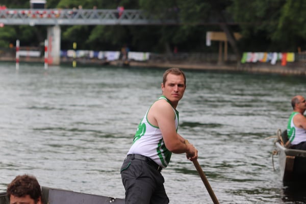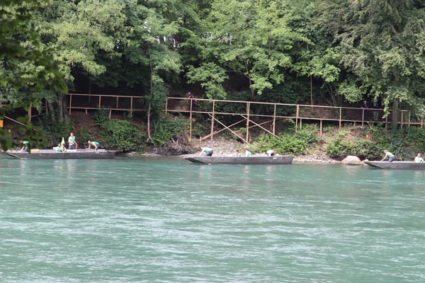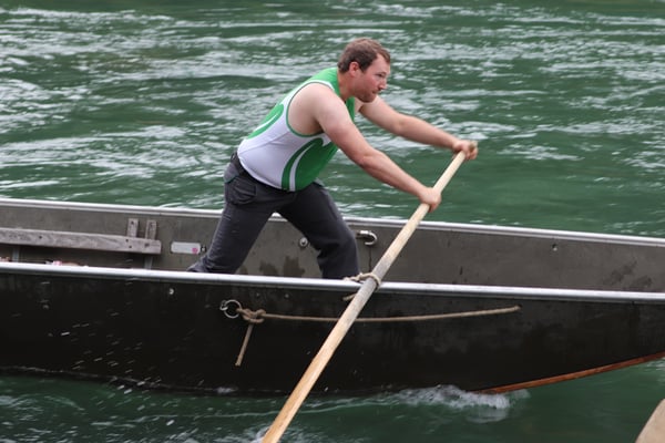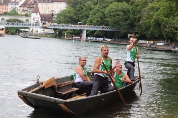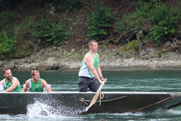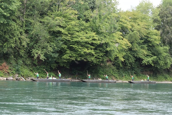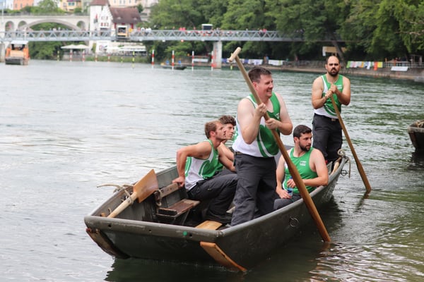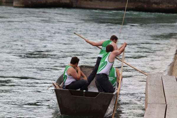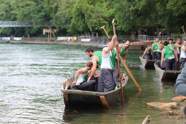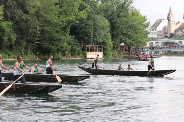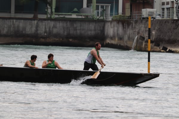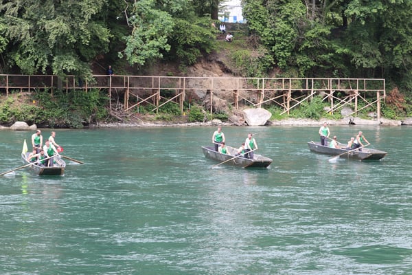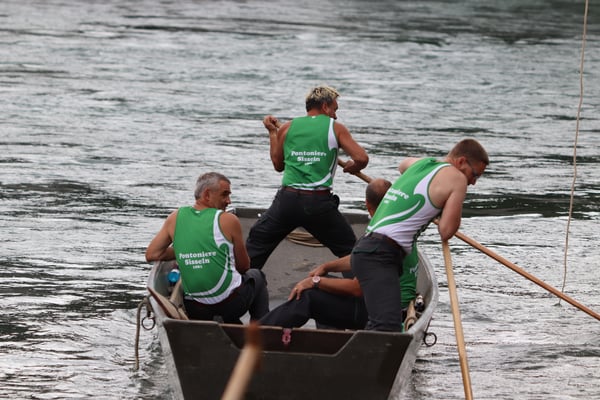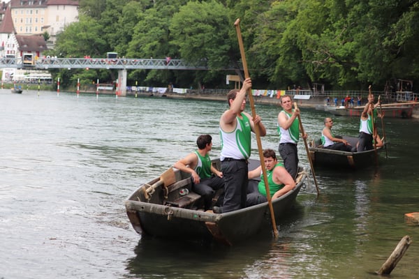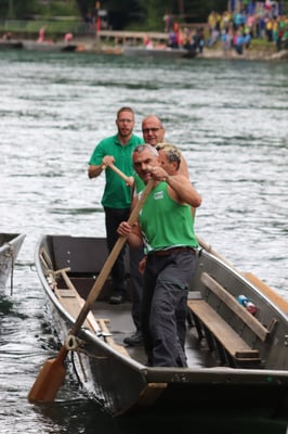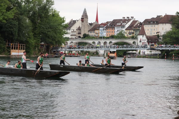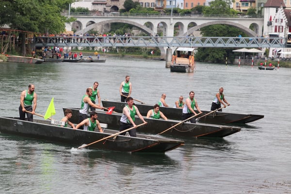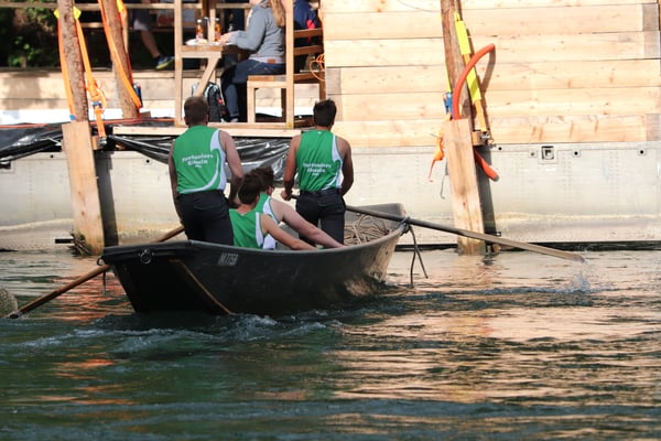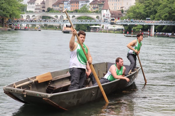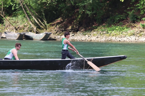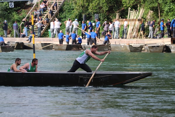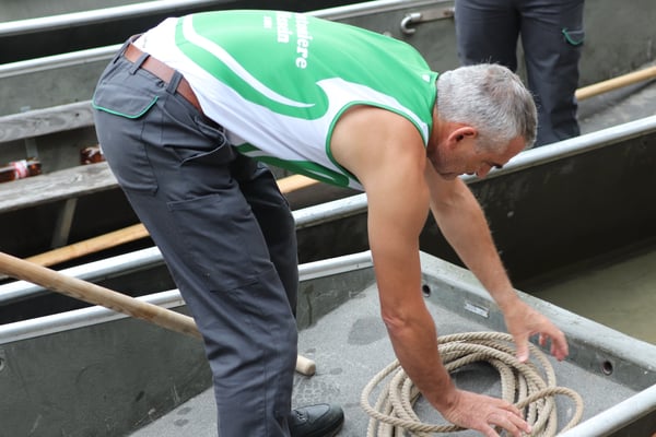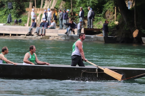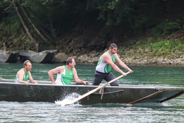 Saubere Überfahrt der Gruppe 2, Ablösung 1. Im Hintergrund zu sehen sind sowohl das zeitgleich stattfindende Einzelwettfahren, als auch Teile des Fällbaum.